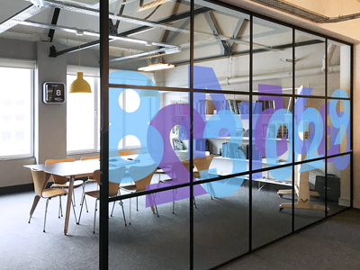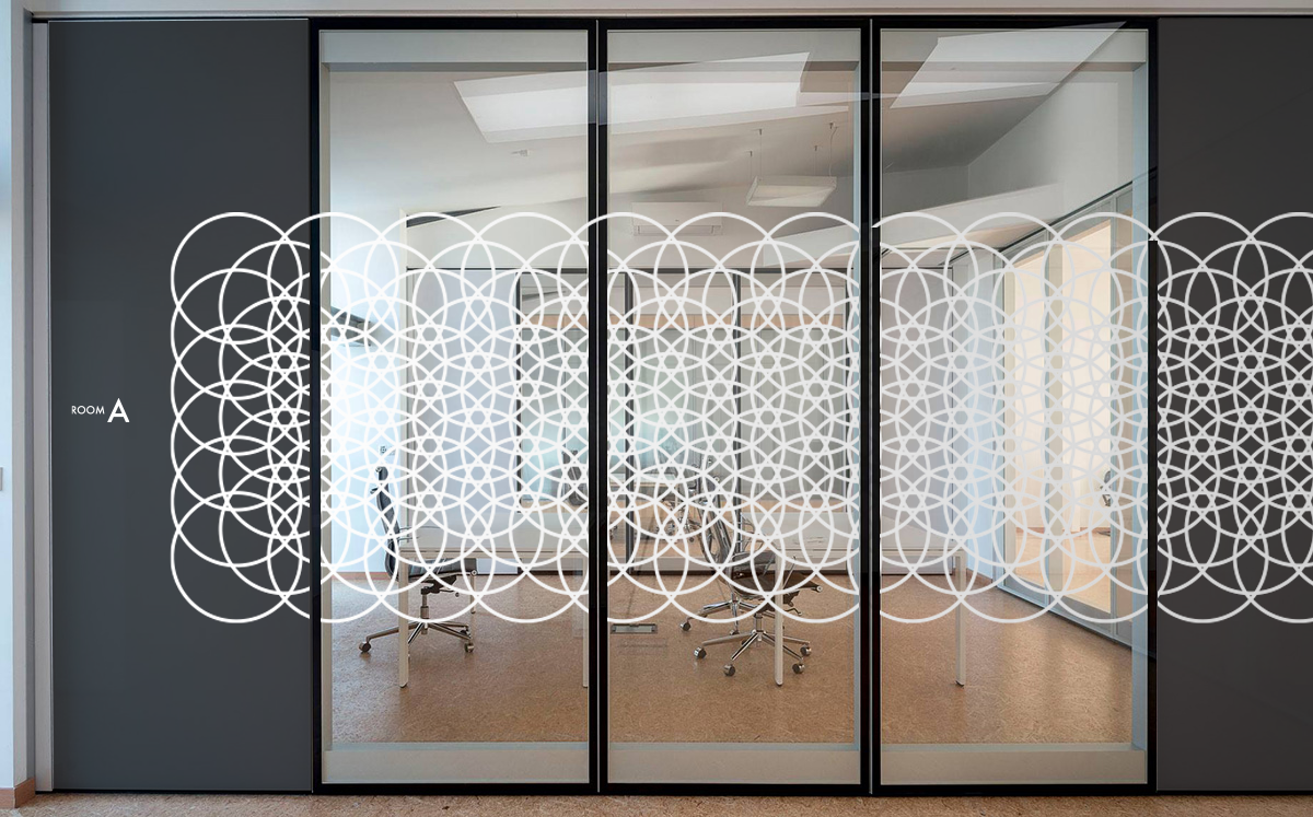 打合せスペース:パーテーション替りに幾何学的な模様で空間を仕切る