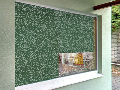 和雑貨店:ロールブラインドを上げている時と下ろしている時で印象が変わる